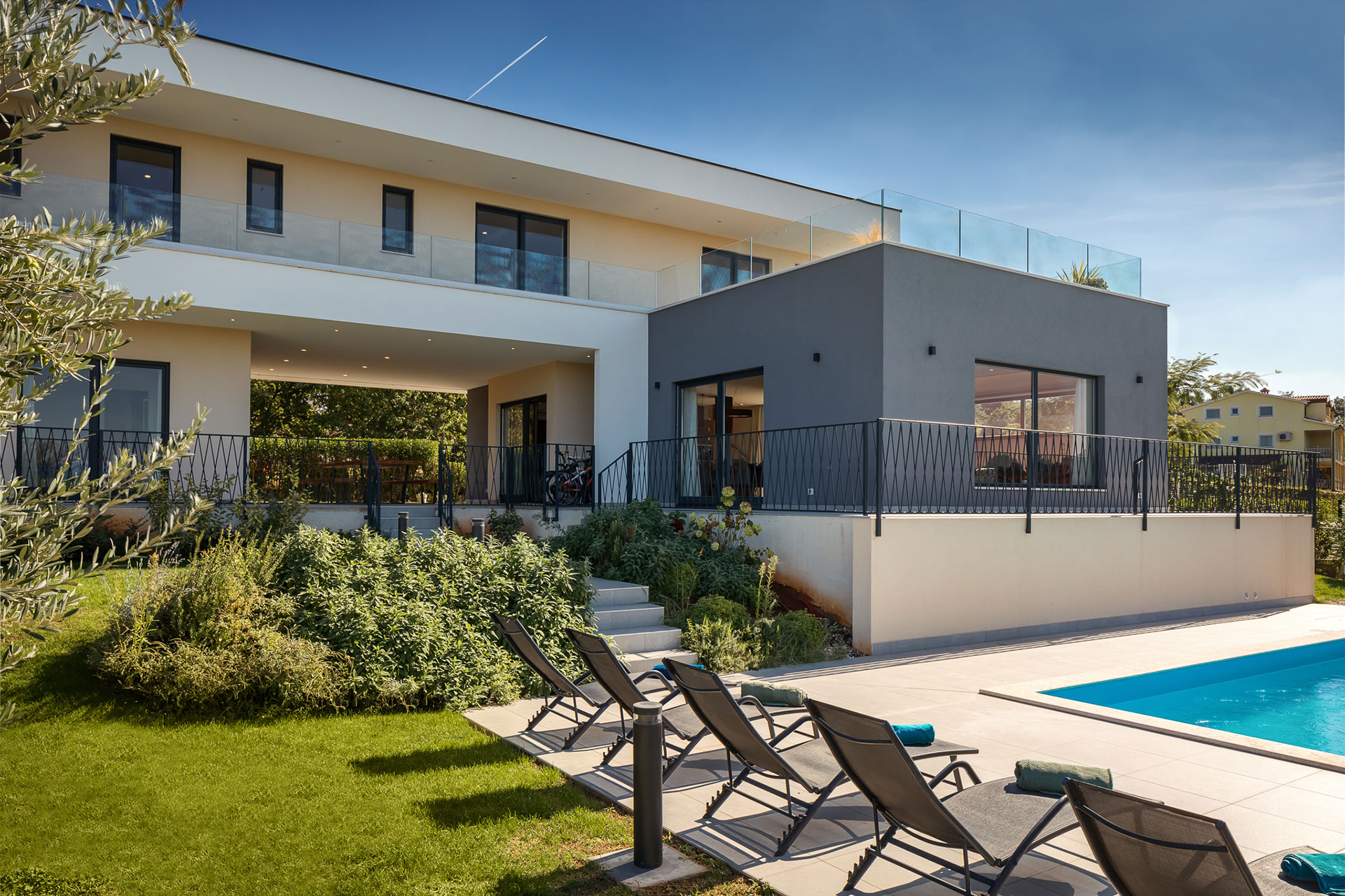 The ground floor is divided into two separate areas. Both areas have access to the large veranda, which offers a wonderful view of the outdoor area. Stairs lead to the private pool with sun loungers where you can unwind your soul. Nearby you will also find a cosy sitting area with charcoal barbecue for delicious meals. Do you need a little more variety? In the basement of the villa, you will find more content for your holiday. In addition, there are 3 bicycles at your disposal on which you can explore the picturesque coastal town of Porec. Villa Maya Mugeba offers not only an excellent location but also the best conditions for a relaxing holiday in beautiful Istria.